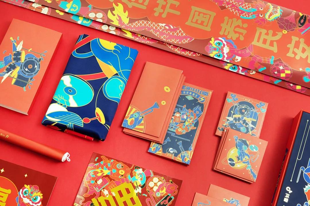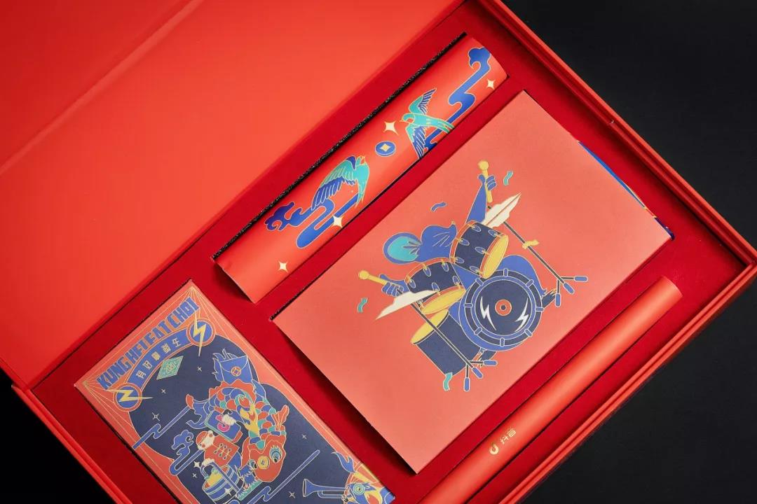 禮盒內有一幅“有好事發生”掛布、一套春聯,以及大小紅包和福字,更酷的是,禮盒采用折疊設計,一秒變裝飾擺件儲物盒。