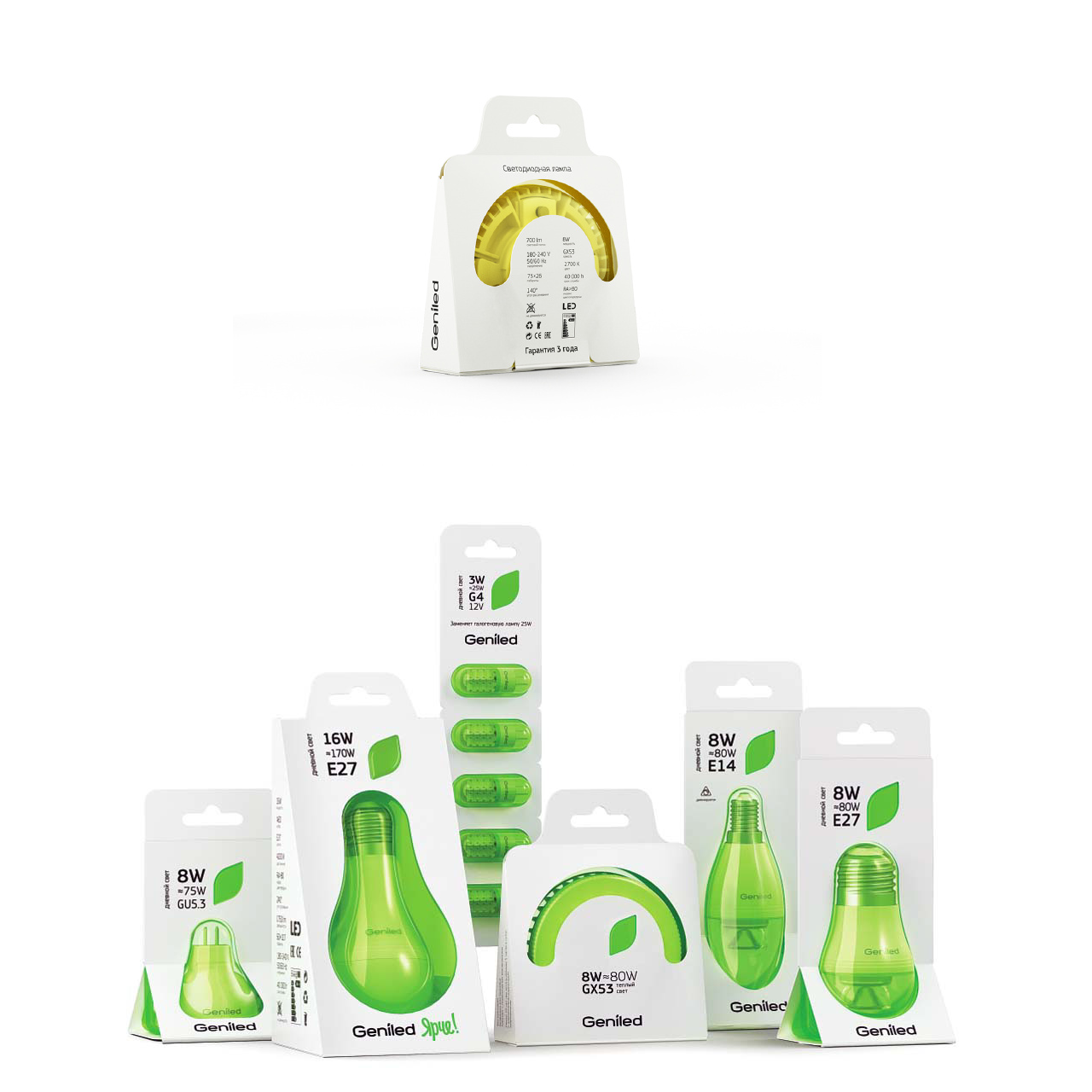 這是一款燈泡包裝,由俄羅斯Evgeniy Pelin設(shè)計。在展現(xiàn)產(chǎn)品時,不僅通過明亮的黃綠配色,傳達(dá)的年輕時尚感讓產(chǎn)品與其他同類產(chǎn)品產(chǎn)生區(qū)分,同時減少包裝用紙,很好的傳遞了環(huán)保自然節(jié)能的理念,與包裝形式渾然一體。