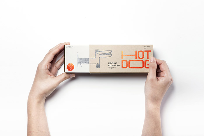 這是David Hovhannisyan設(shè)計(jì)的寵物狗香腸包裝,品牌文字形象生動(dòng),很好的體現(xiàn)了香腸被拉出來的不斷變長的感受,同時(shí)兼具識別性,充滿趣味性。