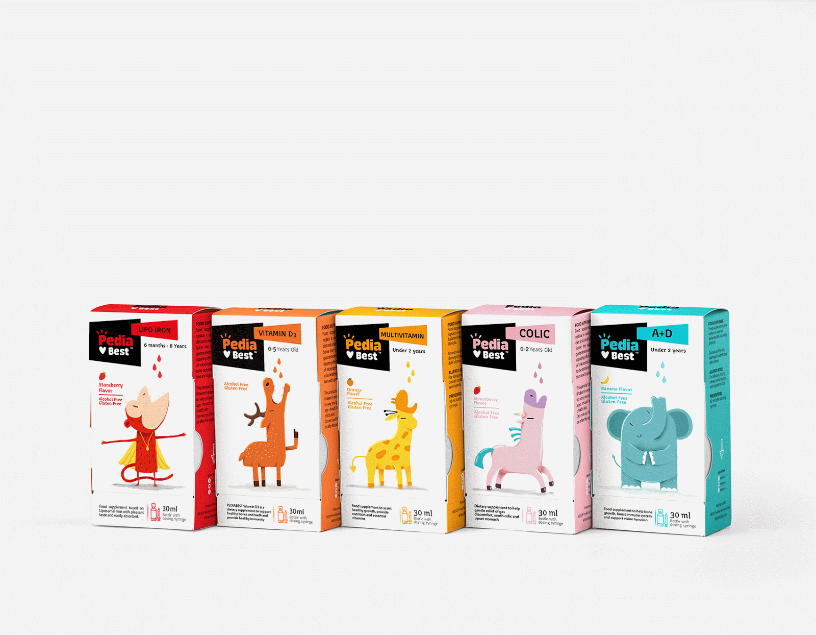 給嬰幼兒喂藥絕對是媽媽們頭疼的一件事情,通常的方法一般是:“讓我看看你的牙齒”,“張開你的嘴!飛機要來了!”,但是往往并不奏效。DEEEZ.CO設計的包裝盒可以講故事,根據每款產品的適應癥,動物們急切地張著嘴要喝糖水。包裝講述有趣的故事。使孩子產生一種渴望和好奇的感覺,并在服藥時使他們愉悅。