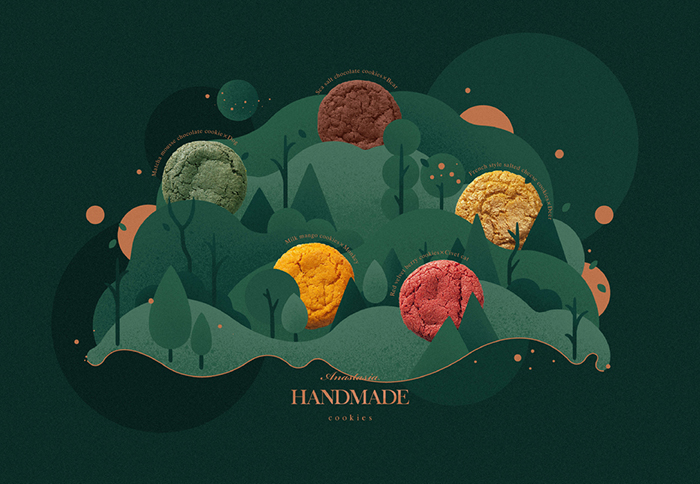 Anastasia納斯塔是一家專注高端手工曲奇的甜品品牌,創始人是一位美麗優雅的女性,她希望把天然優質的產品理念融入品牌視覺,讓購買與品嘗它的顧客能感受到產品的心意與生活的詩意。用味蕾喚醒森林的手工曲奇,赤橙黃綠棕,食材的天然色彩打破視覺邊界,變身可愛的森林精靈,讓天然的美味伴著森林的微風,拂過每一個陽光耀眼的日子。創新設計的隨身小食盒,讓你將有趣的森林精靈盡收囊中。